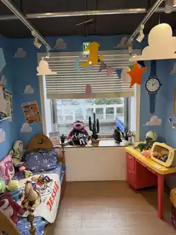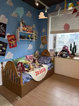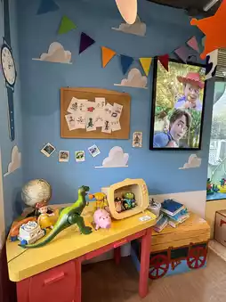 The second floor restaurant is designed like being in Andy's room. So childlike!