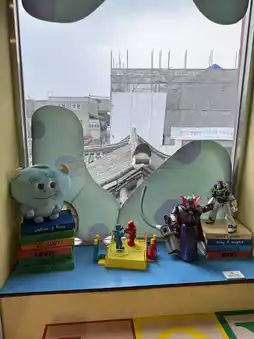 +S’more market toy house is a three-storey Toy Story-themed restaurant in Seoul, with Pixer souvenirs on the first floor, a restaurant on the second floor, and a rooftop garden on the third floor (not open that day) A giant Bass doll and Woody greet you at the door