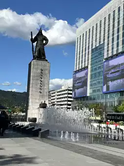 📍Highlights: Views of Gwanghwamun and Gyeongbokgung Palace, statues of King Sejong and Admiral Yi Sun-sin