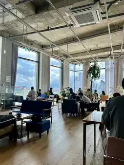 I was really disappointed I couldn't get a window seat, but the stylish space was great. ☕️