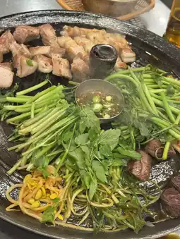 After returning to Hongdae, you can walk directly from Exit 1 to MokGuMung BBQ Hongdae (Mapo-gu, World Cup buk-ro 4-gil, 8 1층) to enjoy the signature water celery barbecue. The tender meat and amazing flavor of water celery have been unanimously praised by Seoul locals and travelers alike.