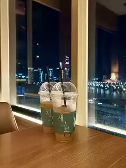 I enjoyed a delicious latte while admiring the night view. 🌃