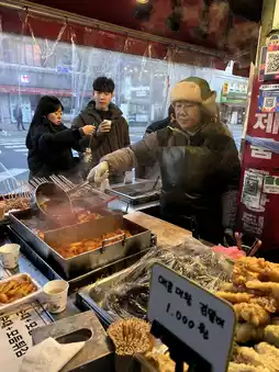 One lucky day, I explored the Museum of Contemporary Art, which is free 🎨. When I stepped outside, it had started snowing lightly, so I headed straight to a nearby ice rink ⛸️. It was incredibly cheap — just one sol (Korean money!) — and they provide shoes, helmets, and kneepads, so you’re fully protected. I skated for 45 minutes, enjoyed a tiny ice cream 🍦, and soaked in the winter atmosphere.