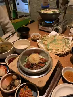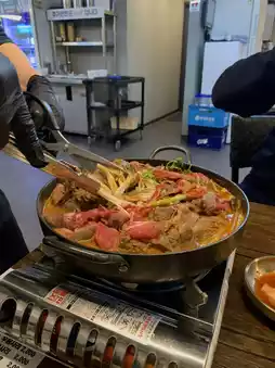 Near the guesthouse, we bought some fruit and met a Mandarin-speaking shop owner who recommended we try samgyetang in Apgujeong. The soup was rich, but it didn’t seem to taste better than the ones from big brands (⁎⁍̴̛ᴗ⁍̴̛⁎). The next day, we wandered around the area again and found a place for dinner serving authentic Korean cuisine. We discovered The Giwa, which had great ambiance and food. I particularly recommend their layered hot pot 🍲!
