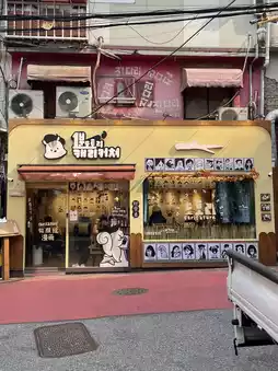 This cafe specializes in drawing adorable cartoon characters. 💛 The walls are adorned with cute cartoons. You'll definitely want to stop and take a look. It only takes a minute to get a cute cartoon souvenir. 🖌️ Perfect as a souvenir or a memory from Hongdae.