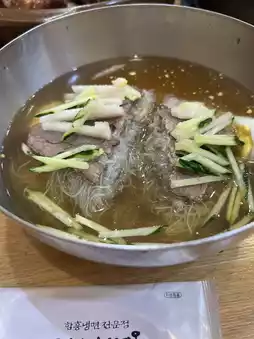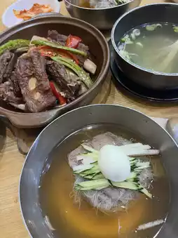 Their cold naengmyeon is refreshing, and the soup is deep and delicious.