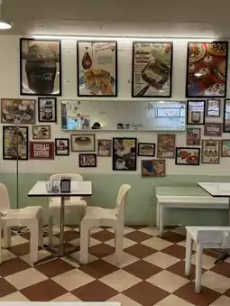 The interior has a vintage feel reminiscent of 1950s America. 🤎