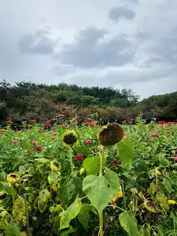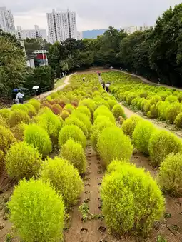 ๐ฟ Standing on the wildflower hill in Olympic Park, where autumn has gently descended, the bright yellow cosmos flowers seemed to shine even more under the autumn sunlight. On the opposite hill, the Kochia plants were gradually turning red, vividly showcasing the change of seasons and leaving me in awe.