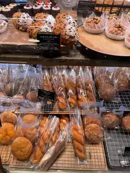 พอเดินเข้าไปเท่านั้นแหละ…โอ้โห!! ขนมปังเรียงรายเต็มตู้ไปหมดจนเลือกไม่ถูกเลย 😍