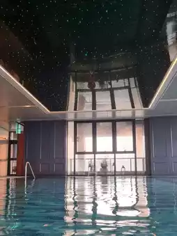Both the swimming pool and fitness center are available at no extra charge. The pool features a sparkling ceiling, and there's a small outdoor heated pool as well. Note that swim caps are required for pool use, but they are available for free rental.