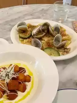 The menu at Milano Sikdang focuses on classic Italian fare with a rustic touch. I tried their cream gnocchi, which was rich and creamy without being overpowering, with pillowy-soft gnocchi that melted in your mouth. The vongole pasta stood out for its light, garlicky sauce and fresh clams, striking a balance between simplicity and flavor. The portions are just right—filling without being heavy—making it an ideal place for a casual meal. The restaurant also offers a small selection of wines, thoughtfully chosen to complement the dishes.
