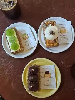 This cafe is popular in Yeonnam-dong for its dessert pies. Many foreign tourists also visit for its delicious food. The filling, chewy pies were delicious!