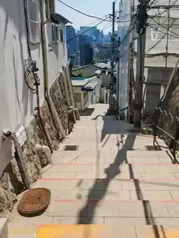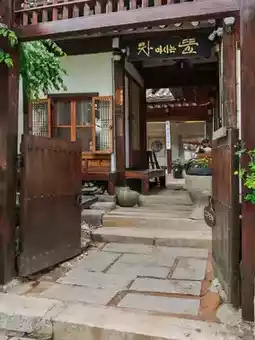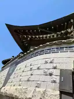 Bukchon Hanok Village ๐ก โ Wander through charming streets lined with traditional wooden houses.