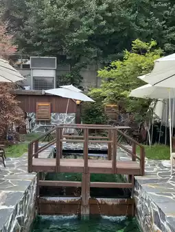 • The outdoor waiting area features a wooden pier and greenery, making waiting in line less stressful;
