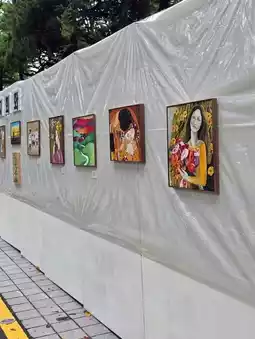 Each piece showcases lively brushstrokes, and the colors change with the light, offering a new perspective from every angle. Pedestrians pause to admire the works, transforming the alleys of Samcheong-dong into an impromptu art gallery. 🖼️
