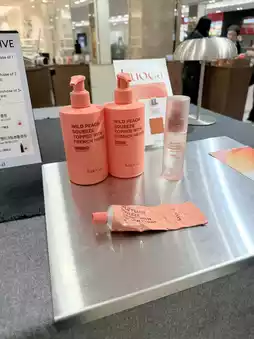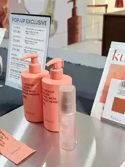 kuoca's new release is a peach scent, so the store was even more adorable with peach decorations. 🍑🩷