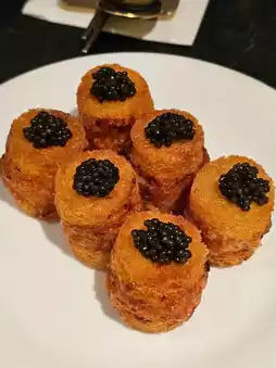 The Beef Truffle Jajangmyeon was delightful, with thinly sliced truffle on top that filled my mouth with its rich aroma. The noodles were chewy, and the beef steak on top was moist and tender. Additionally, you can request their house-made green onion kimchi, which pairs perfectly with the jajangmyeon. The Caviar Menbosha, topped with luxurious caviar, was a perfect combination of salty caviar and crispy yet moist menbosha.