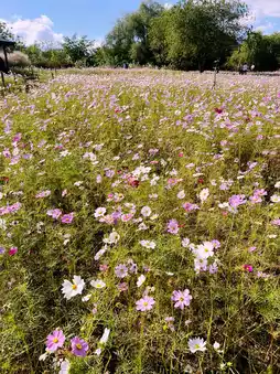 Here and there, cosmos flowers gently nodded their heads, blending harmoniously with the autumn sky to create an even more picturesque view. Strolling through the harmonious beauty of nature under the clear, high sky felt incredibly peaceful and joyful with every step. 🌺