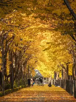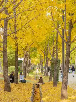 In mid-November, the ginkgo here forms a golden tunnel, with sunlight filtering through the leaves—super healing.