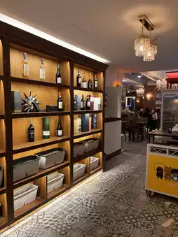 The restaurant's interior is luxurious, with an aquarium in the center. The chandeliers create a luxurious atmosphere, and there are plenty of private rooms available.