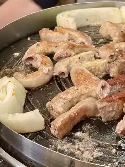 The juicy samgyeopsal and beef innards are grilled on a teppanyaki grill, while the rich cheese bokkeumbap is the perfect finale. All were very satisfying.