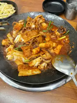 For a truly local and humane Seoul experience, Gwangjang Market is a must-visit! During the day, the market is packed with stalls, offering authentic Korean ramen, sticky rice cakes, crispy fried foods, and other street food. Enjoy a feast right from the stalls! My must-try dishes are the ramen and the spicy stir-fried octopus. The octopus is incredibly spicy but not overpowering, making it a perfect accompaniment to drinks. Many stall owners here are proactive and helpful. Koreans are truly kind and helpful with directions and orders, making you feel at ease in a foreign place.