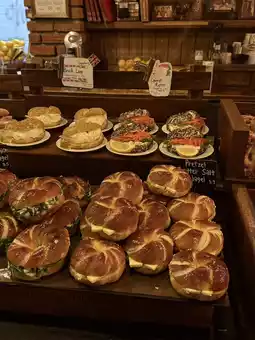 This shop is a bagel-specializing cafe/bakery. They offer a variety of bagels, both sweet and savory, such as bagels with cream cheese, bagel sandwiches, and soups served with bagels.