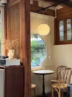 A one-minute walk from Anguk Station Exit 1, Café Sudal is nestled in an alleyway, a charmingly renovated hanok (traditional Korean house). The warm wood and soft lighting create a calm and cozy atmosphere. The interior features both seating and tables, allowing you to choose your preferred seating. The skylights allow natural light to stream in, making for beautiful photos.