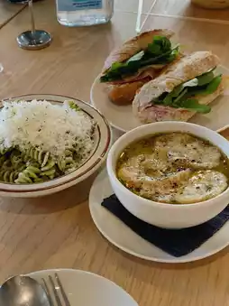 When I go with a friend, I always order the onion soup (haha), and they even have jambon beurre and cold pasta.