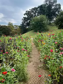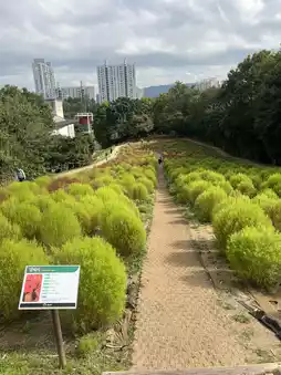 Visiting the Olympic Park, which is perfect for a stroll, I was greeted by cherry trees bathed in autumn hues, a field of wildflowers, and a zinnia garden, all coming together in a breathtaking view. The yellow-tinted cherry tree leaves fluttering along the path felt heartwarming, and the vibrant harmony of colors in the wildflower field and zinnia garden was a feast for the eyes. ๐ฆ