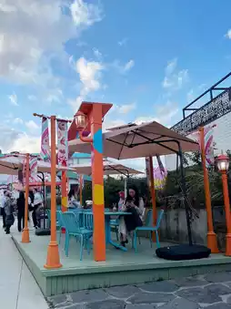 I visited the rooftop rest area and photo zone, taking a moment to relax while looking down below. It was fascinating to see the blend of people walking through the alleys and streets and the traditional shops all in one view. 🦋