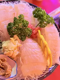 A piece of plump flatfish sashimi