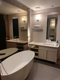 The rooms are spacious and include a bathtub. However, the drainage system tends to clog and cause flooding. Soundproofing is decent, and the beds are comfortable.