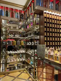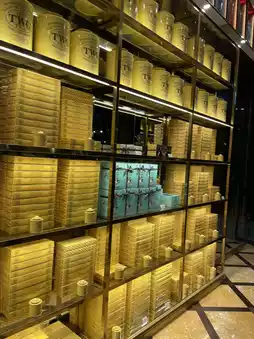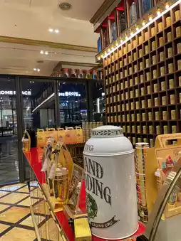 The moment you step inside, the sparkling golden interior and the fragrant aroma of tea will captivate your senses. Hundreds of elegantly displayed tea cans line the walls, and tea wares and desserts are showcased like precious jewels. ✨