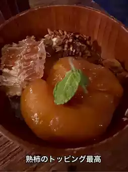 Greek yogurt dessert and giant acorn madeleines. I ordered Greek yogurt topped with my favorite autumnal ripe persimmon.
