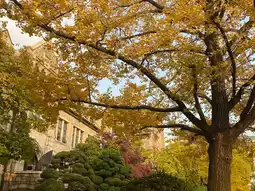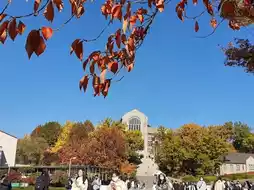 From late October to early November, the atmosphere becomes warm and romantic. The main walkway from the front gate to the academic buildings is lined with trees on both sides. The Ewha Campus Complex (ECC Building), a modern glass structure embedded in the hillside, becomes a popular photo spot where the autumn leaves contrast beautifully with the architecture 📸.