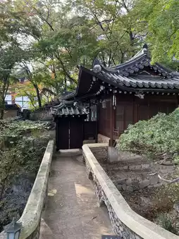As I leisurely strolled through the temple grounds, the tranquil hanok buildings and neatly manicured courtyards blended together to create a picturesque scene. The sound of the leaves swaying in the breeze and the soft chiming of the bells brought a sense of peace to my heart.🔮