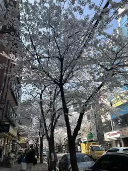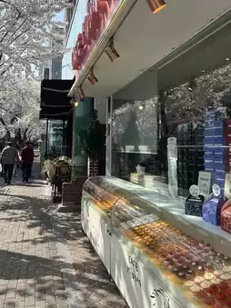 Cafe Mignon in the Hapjeong area is one of the most popular check-in spots during cherry blossom season. Located near the cafe street, it's a perfect place to take a stroll under the cherry blossoms and then relax with a cup of coffee and some delightful desserts. 🌿