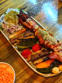 The butter-grilled scallops, chicken gizzards, and fried eggplant are particularly popular,