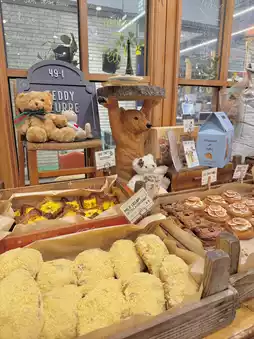 With its cozy wood-toned interior and teddy bears scattered throughout,