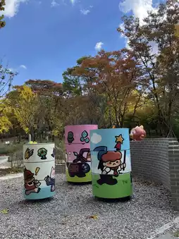 Located within the Children's Grand Park, the themed garden 'Lucky Mercenary Maze Garden' features large character sculptures placed throughout, catching the eye. Walking through the maze-like garden, it seems like children would enjoy exploring and finding the characters. 🍁