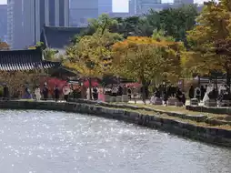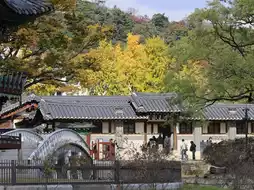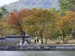 and as you cross the Hyangwonjeong Bridge, you can hear the sound of stepping on red ginkgo leaves.