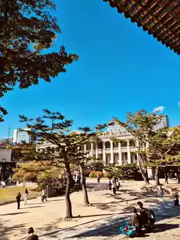 The environment is designed to maximize tranquility. Unlike the vast, open spaces of larger palaces, Deoksugung Palace (덕수궁) has a cozy feel, making it easy to find a quiet spot to sit and admire the harmonious blend of traditional wooden structures and the palace's own Western-style garden and fountain—the first of its kind in Korea.