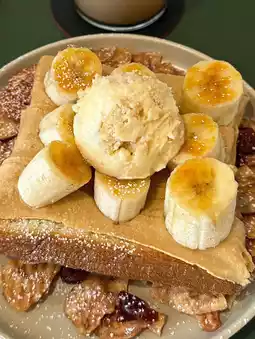 Don’t miss the Banana Pudding Toast (₩7,500) — thick toast topped with handmade peanut butter, creamy pudding, banana chips, and cranberries. The mix of textures is amazing! 🍞🍌