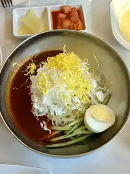 Here, I recommend ordering not only the Wang Donkatsu, but also the Jjolmyeon (spicy noodles) as a set.