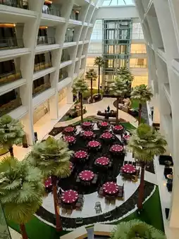 Mövenpick Hotel & Convention Centre KLIA is a premium hotel just 10 minutes from KLIA and KLIA2, offering a tranquil escape with lush landscaping and elegant architecture. Designed with Muslim-friendly features, it provides separate swimming areas for men and women, prayer facilities, and alcohol-free dining. Rooms are spacious and modern, with rainfall showers, flat-screen TVs, and comfortable beds. Guests can enjoy a fitness centre, spa, kids’ club, and a chocolate hour treat every afternoon. A free airport shuttle makes transit convenient, while its peaceful environment and quality service make it ideal for business travellers, families, or those with layovers.