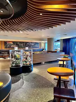The airport itself is also well-equipped, with a wide selection of restaurants and cafes. We chose Din Tai Fung this time. Although pork isn't available in a Muslim country, the chicken chop fried rice and chicken dumplings were still excellent, with tender, juicy, and filling flavors, making for a satisfying meal. We also visited Starbucks afterward and discovered the adorable bear figurines designed by Malaysian artists. They're a true local favorite. Overall, waiting at KLIA is not only comfortable but also full of surprises, allowing for a relaxing and enjoyable experience as we prepare for our next journey.