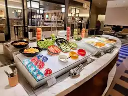 The highlight is their made-to-order hot food station, where you can order noodles, pasta, or sandwiches, which adds a warm and personal touch to the dining experience. If you're a coffee lover, there's even a dedicated barista to serve you freshly brewed coffee, which is a huge plus!