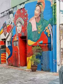 🌟 Experience Vibe: A cheerful urban walkway full of color, creativity, and community energy — perfect for a relaxed outing! 💖