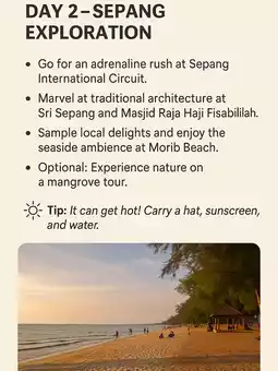 #sepangitinerary Day 1 — Sepang Arrival & Coastal Views